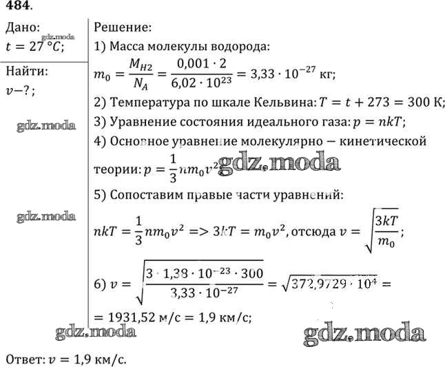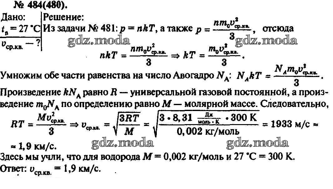 ОТВЕТ на задание № 484 Задачник по Физике 10-11 класс Рымкевич УМК