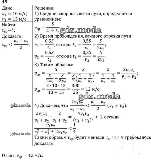 ОТВЕТ на задание № 49 Задачник по Физике 10-11 класс Рымкевич УМК