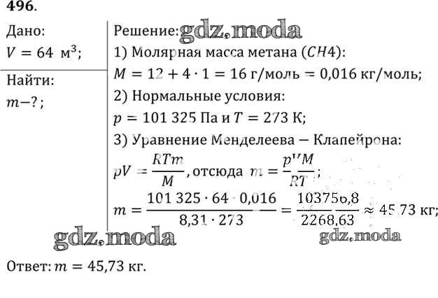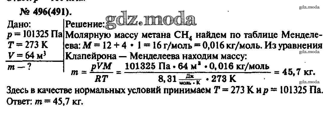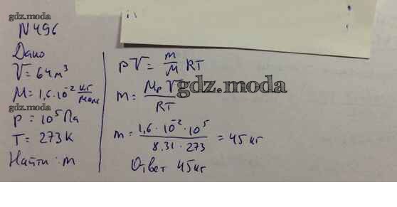 ОТВЕТ на задание № 496 Задачник по Физике 10-11 класс Рымкевич УМК