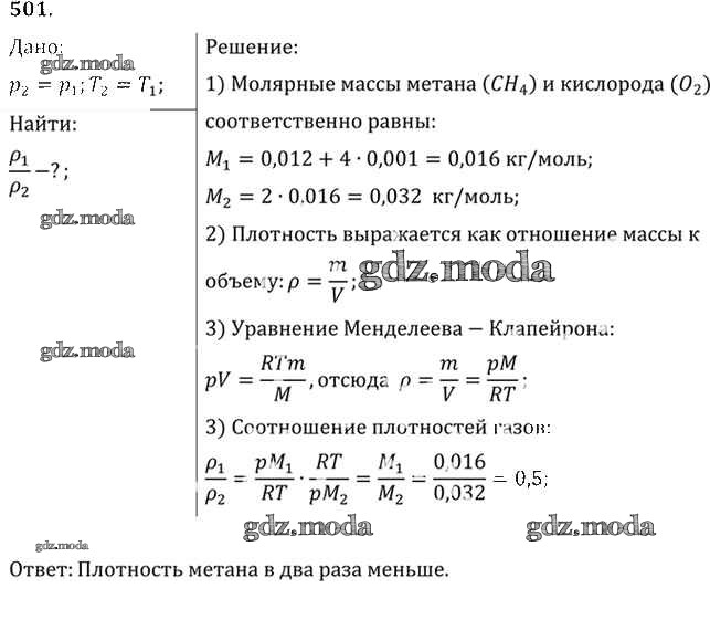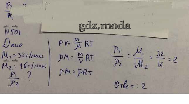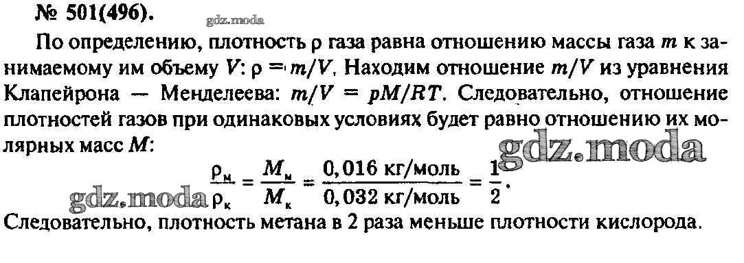 ОТВЕТ на задание № 501 Задачник по Физике 10-11 класс Рымкевич УМК