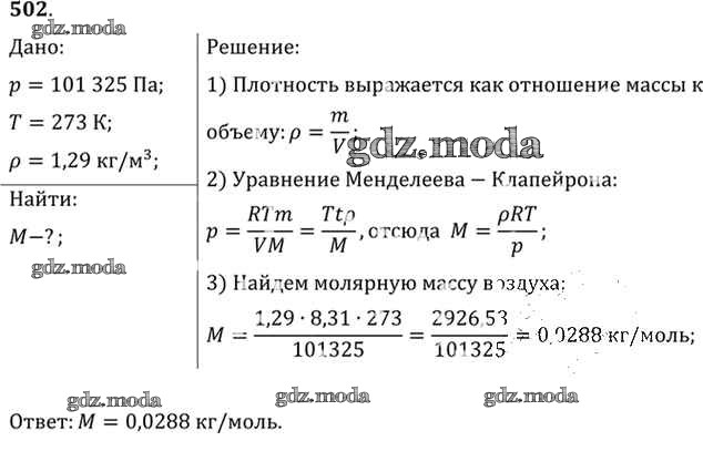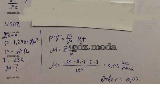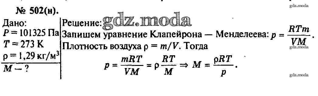 ОТВЕТ на задание № 502 Задачник по Физике 10-11 класс Рымкевич УМК