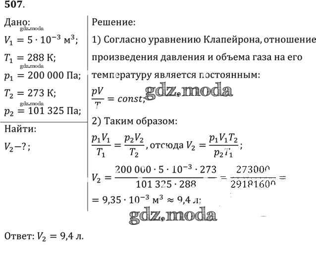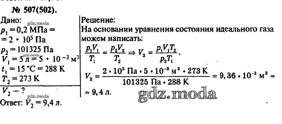 ОТВЕТ на задание № 507 Задачник по Физике 10-11 класс Рымкевич УМК