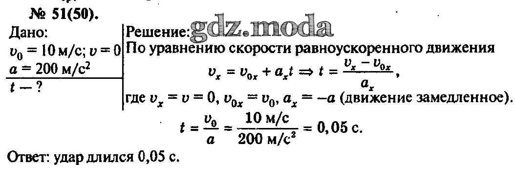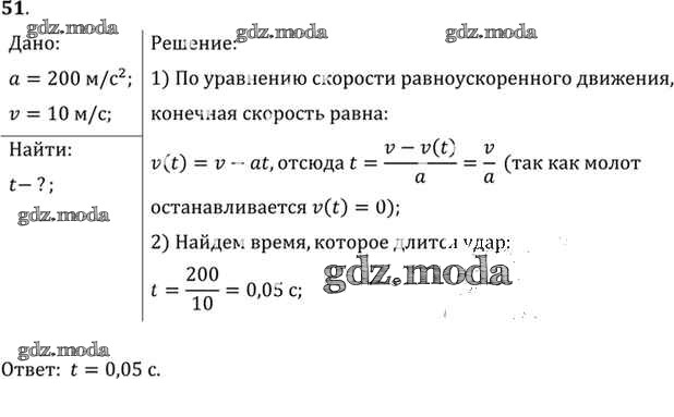 ОТВЕТ на задание № 51 Задачник по Физике 10-11 класс Рымкевич УМК