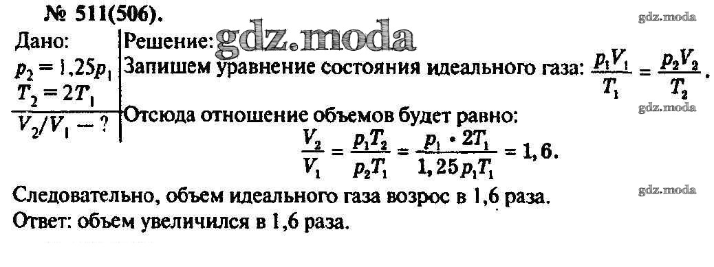 ОТВЕТ на задание № 511 Задачник по Физике 10-11 класс Рымкевич УМК