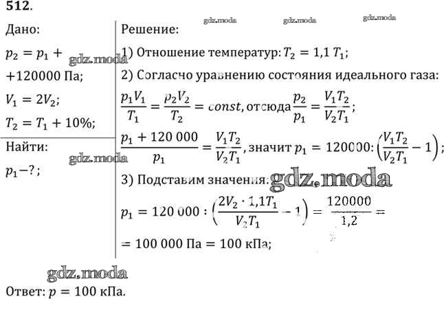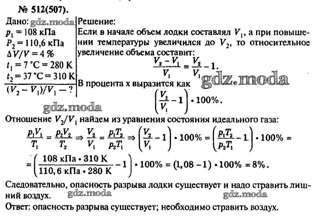 ОТВЕТ на задание № 512 Задачник по Физике 10-11 класс Рымкевич УМК