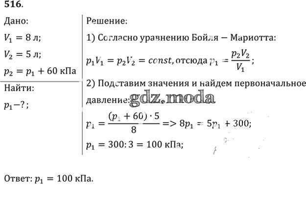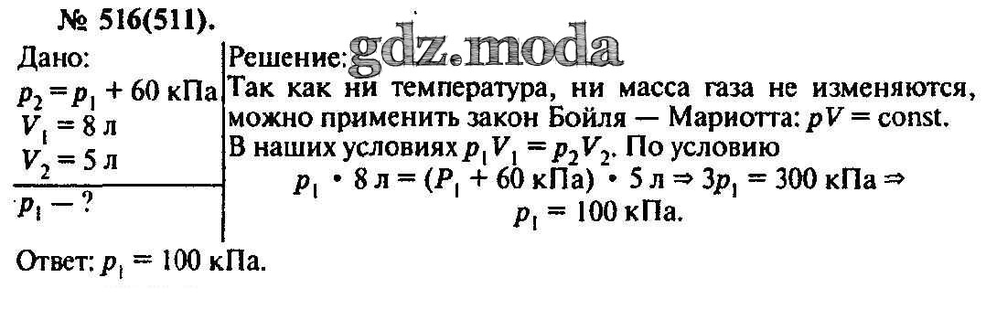 ОТВЕТ на задание № 516 Задачник по Физике 10-11 класс Рымкевич УМК