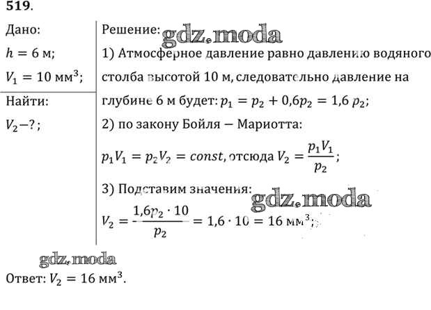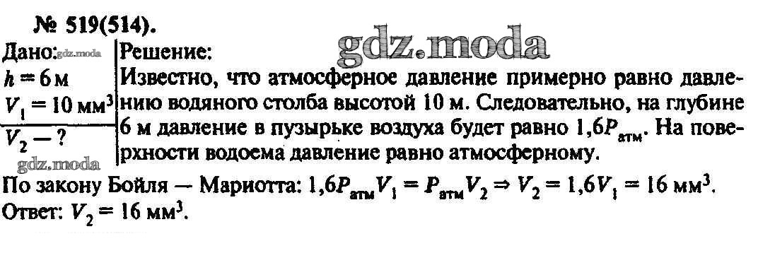 ОТВЕТ на задание № 519 Задачник по Физике 10-11 класс Рымкевич УМК