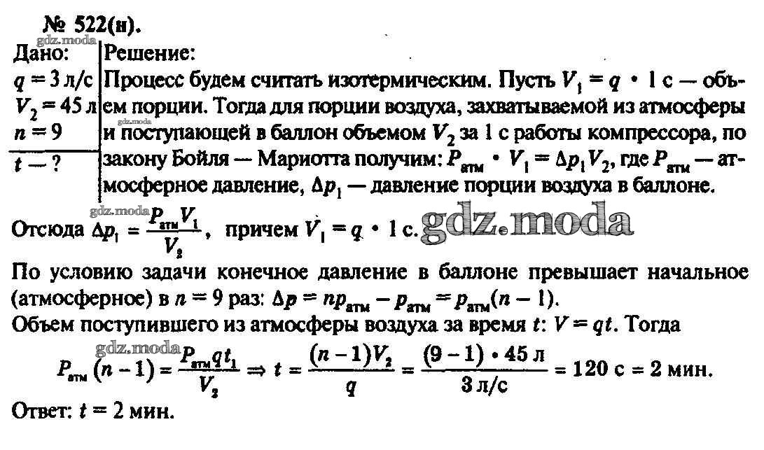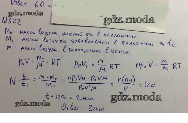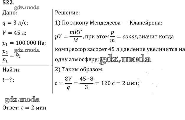 ОТВЕТ на задание № 522 Задачник по Физике 10-11 класс Рымкевич УМК