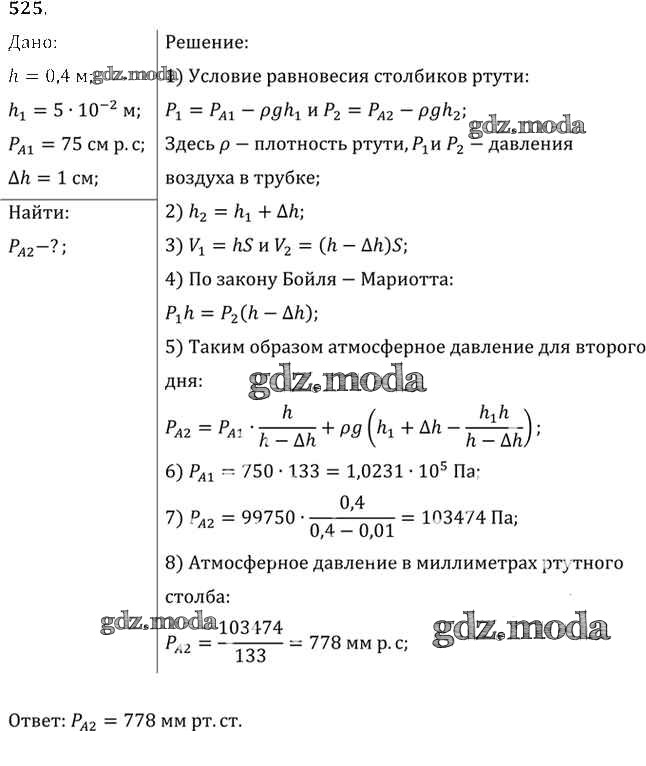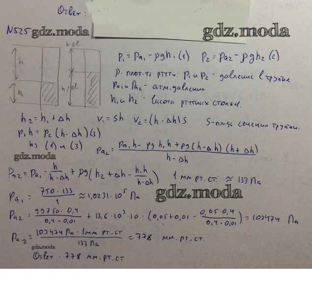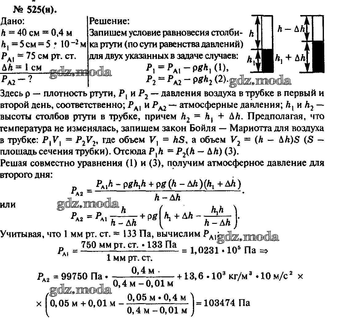 ОТВЕТ на задание № 525 Задачник по Физике 10-11 класс Рымкевич УМК