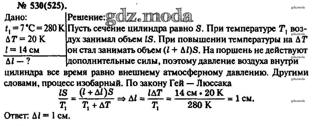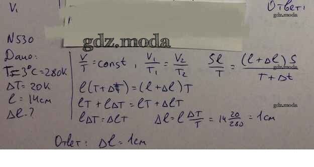 ОТВЕТ на задание № 530 Задачник по Физике 10-11 класс Рымкевич УМК