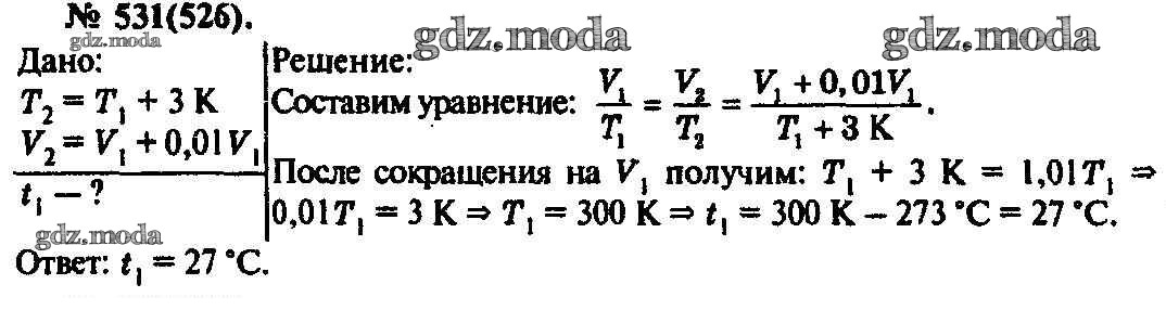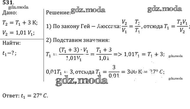 ОТВЕТ на задание № 531 Задачник по Физике 10-11 класс Рымкевич УМК
