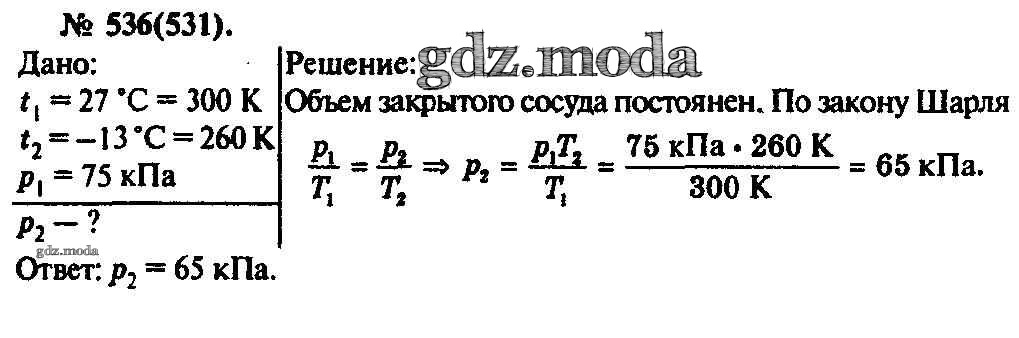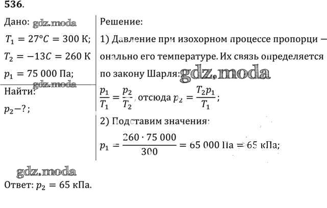 ОТВЕТ на задание № 536 Задачник по Физике 10-11 класс Рымкевич УМК