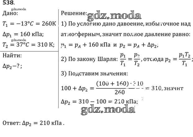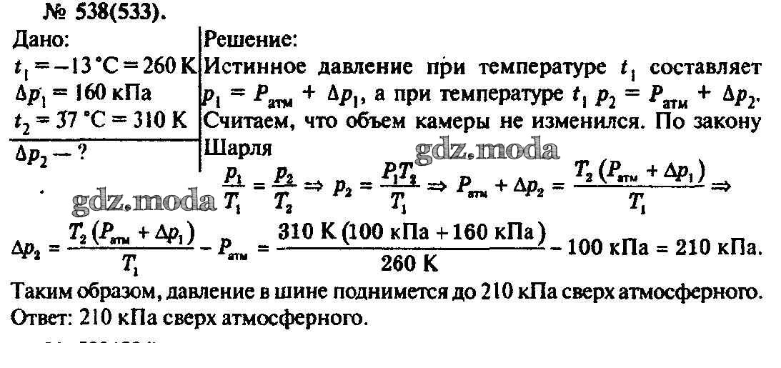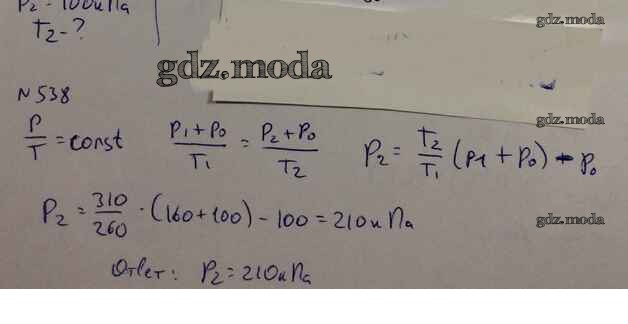 ОТВЕТ на задание № 538 Задачник по Физике 10-11 класс Рымкевич УМК