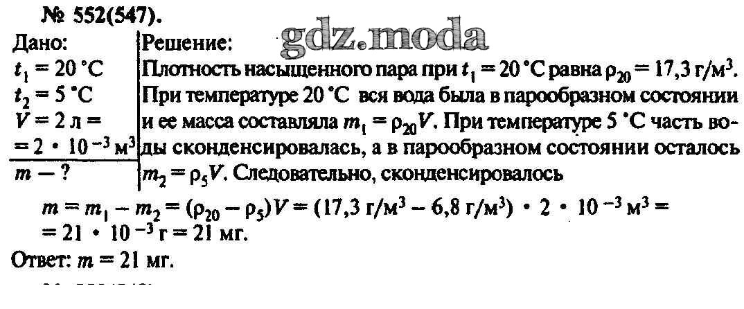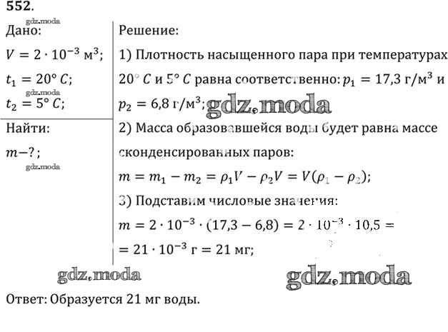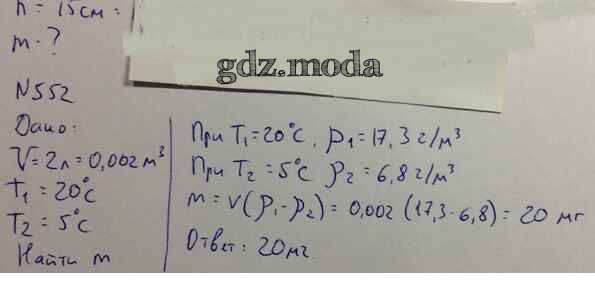 ОТВЕТ на задание № 552 Задачник по Физике 10-11 класс Рымкевич УМК