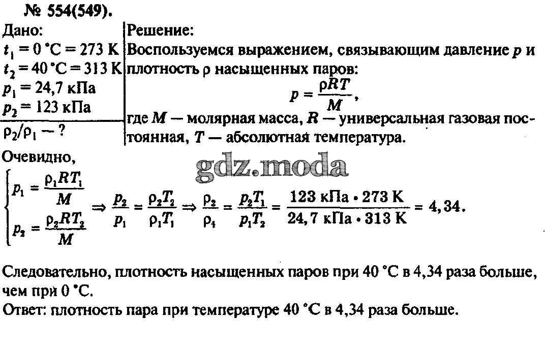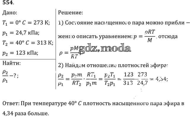 ОТВЕТ на задание № 554 Задачник по Физике 10-11 класс Рымкевич УМК