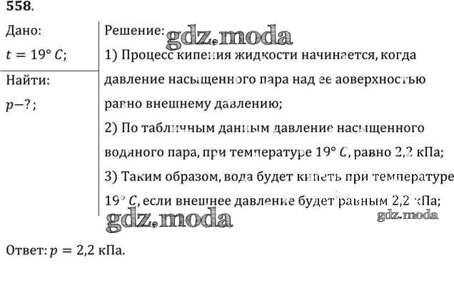 ОТВЕТ на задание № 558 Задачник по Физике 10-11 класс Рымкевич УМК