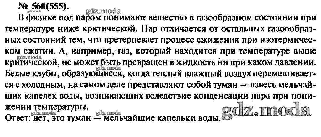 ОТВЕТ на задание № 560 Задачник по Физике 10-11 класс Рымкевич УМК