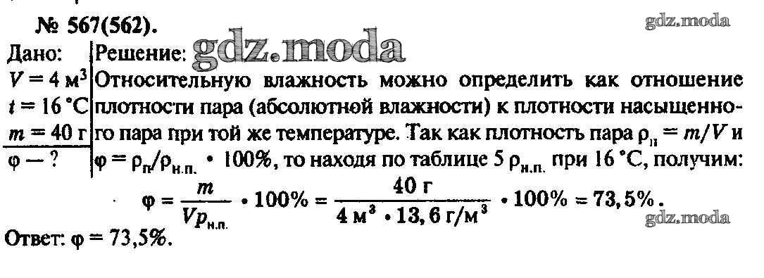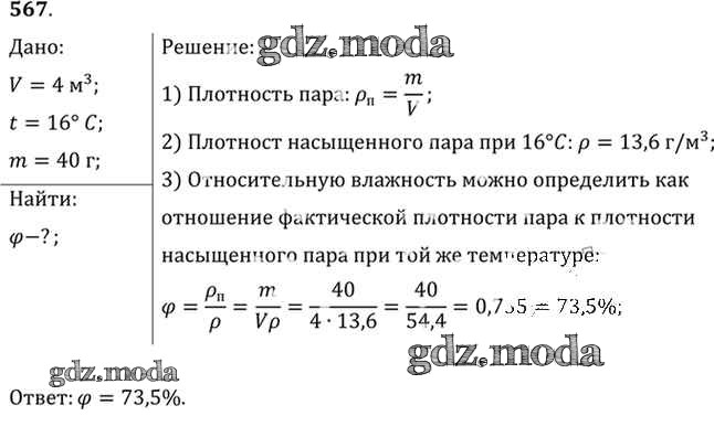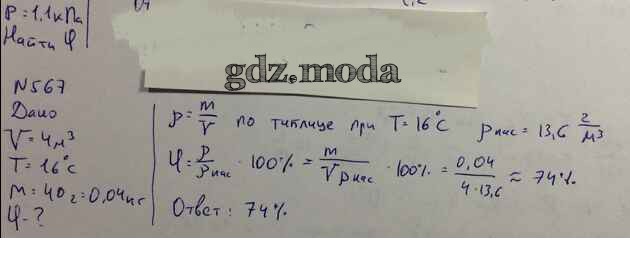 ОТВЕТ на задание № 567 Задачник по Физике 10-11 класс Рымкевич УМК