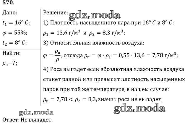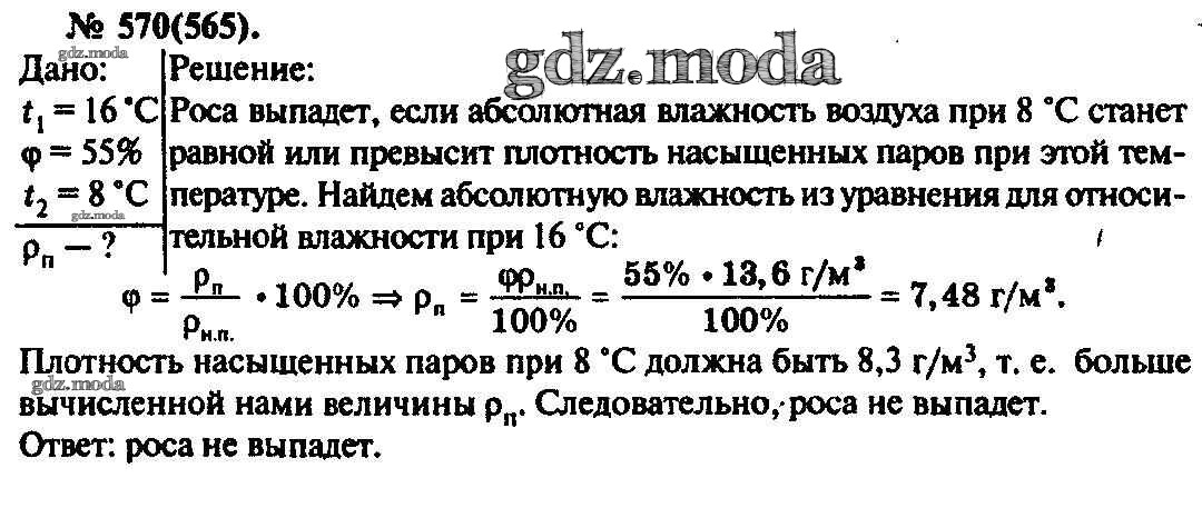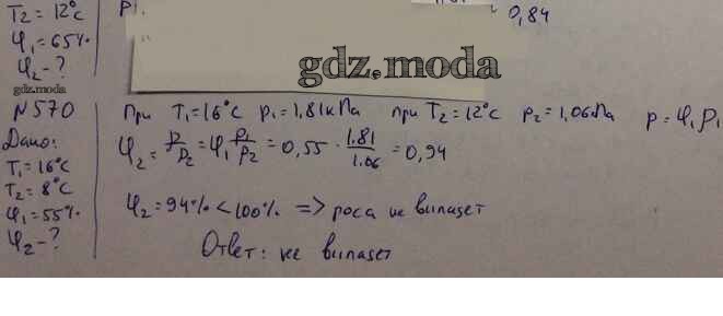 ОТВЕТ на задание № 570 Задачник по Физике 10-11 класс Рымкевич УМК