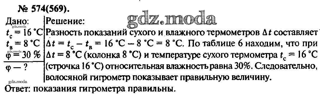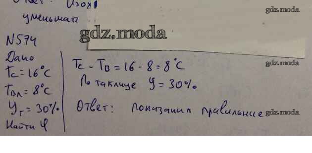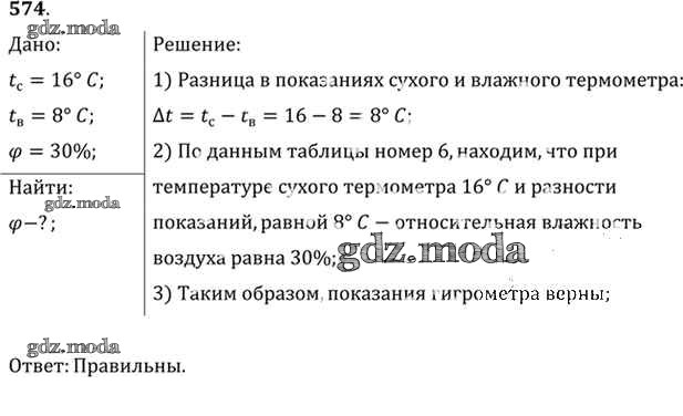 ОТВЕТ на задание № 574 Задачник по Физике 10-11 класс Рымкевич УМК