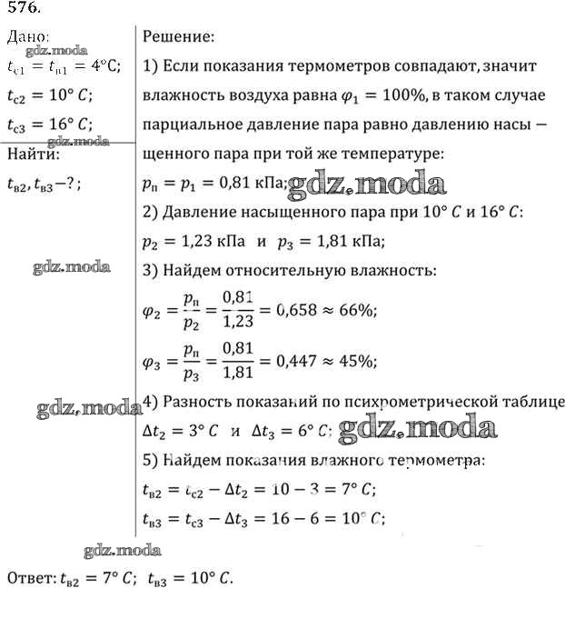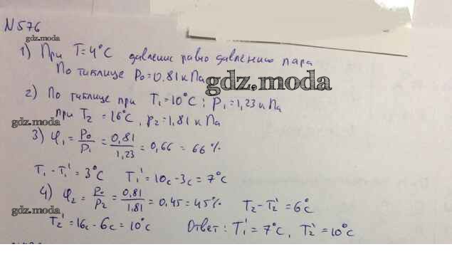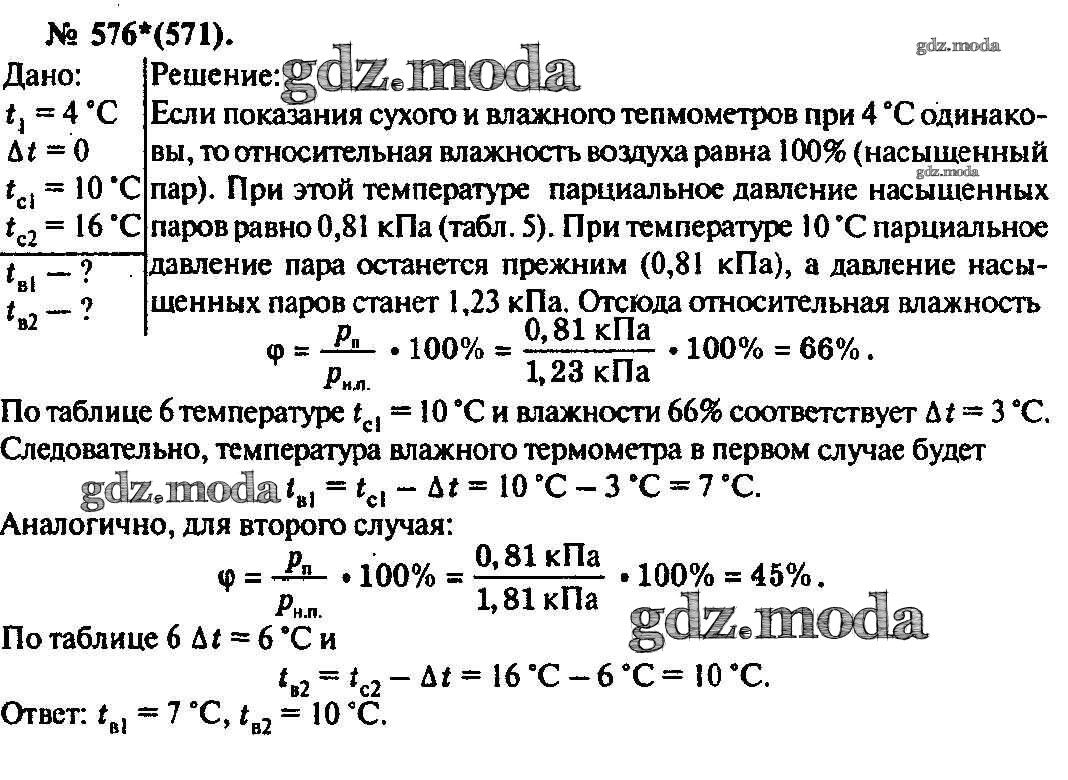 ОТВЕТ на задание № 576 Задачник по Физике 10-11 класс Рымкевич УМК