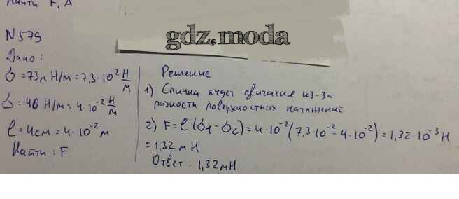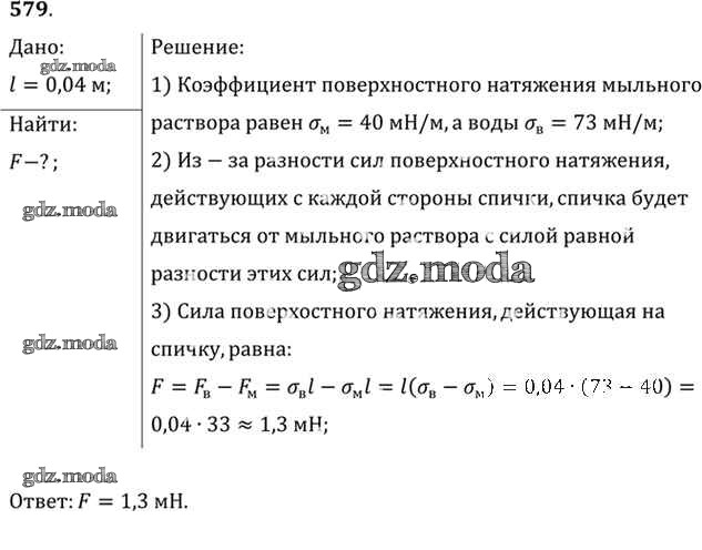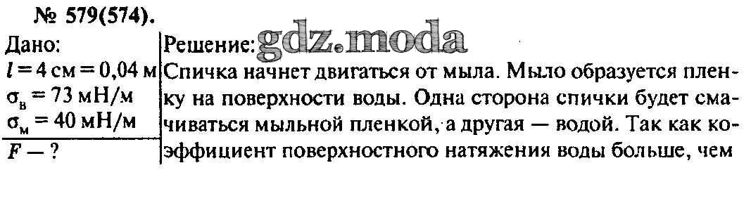 ОТВЕТ на задание № 579 Задачник по Физике 10-11 класс Рымкевич УМК