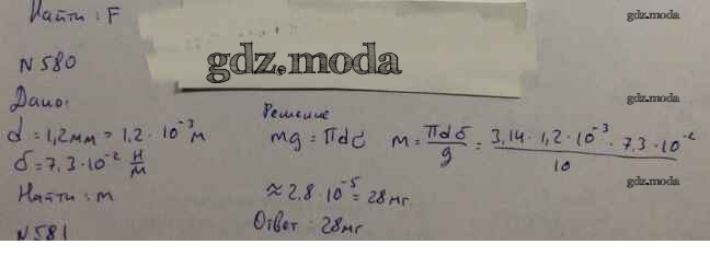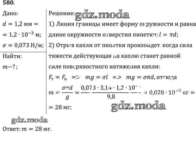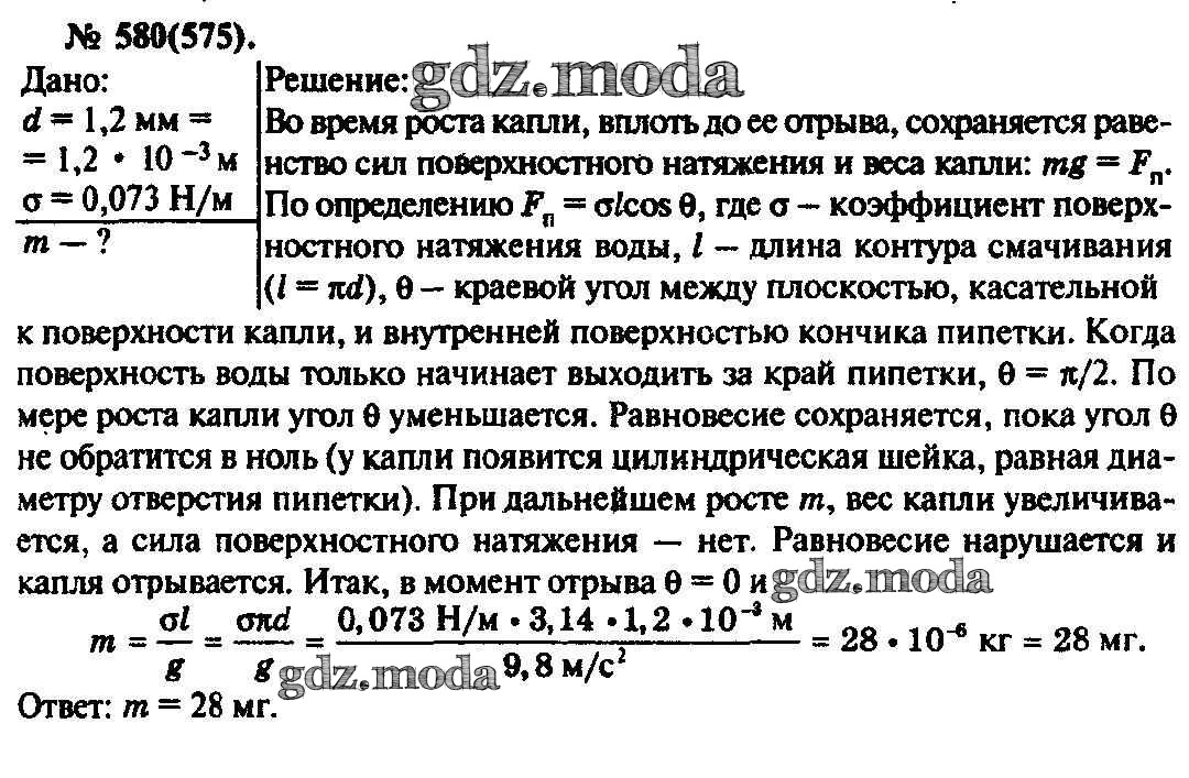 ОТВЕТ на задание № 580 Задачник по Физике 10-11 класс Рымкевич УМК