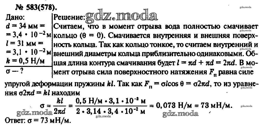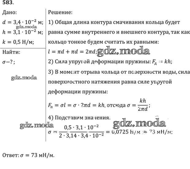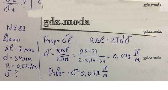 ОТВЕТ на задание № 583 Задачник по Физике 10-11 класс Рымкевич УМК