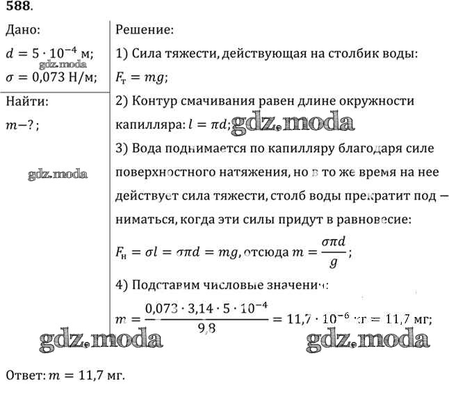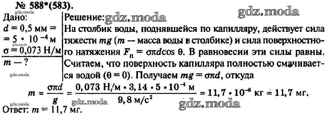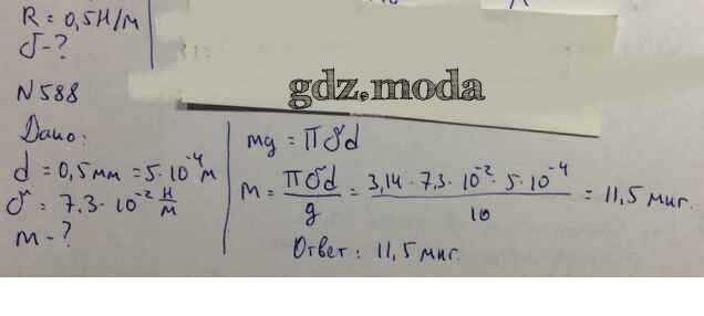 ОТВЕТ на задание № 588 Задачник по Физике 10-11 класс Рымкевич УМК
