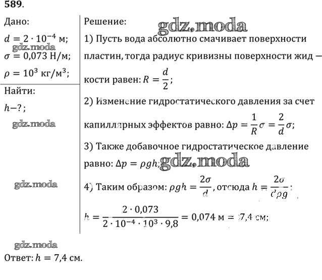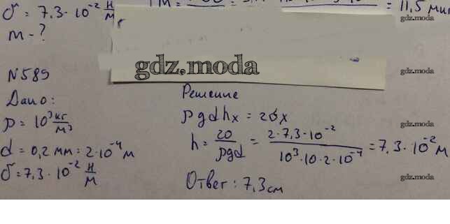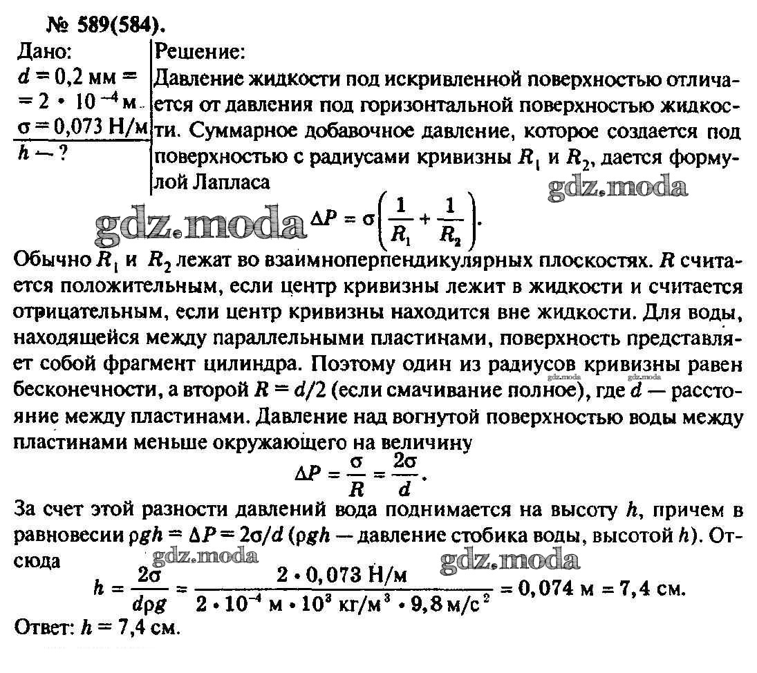 ОТВЕТ на задание № 589 Задачник по Физике 10-11 класс Рымкевич УМК