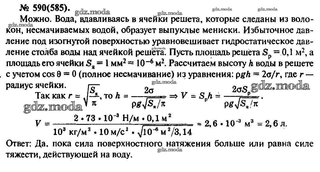 ОТВЕТ на задание № 590 Задачник по Физике 10-11 класс Рымкевич УМК