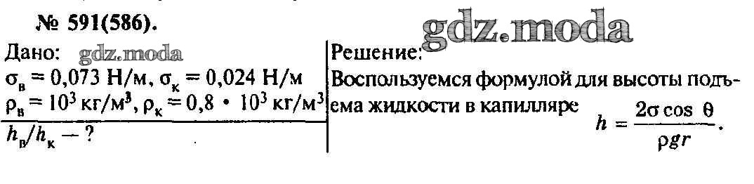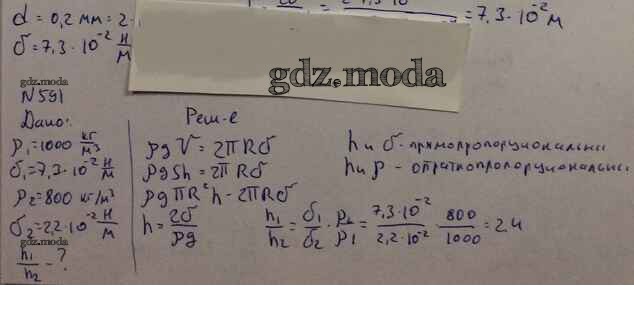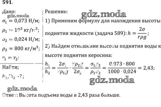 ОТВЕТ на задание № 591 Задачник по Физике 10-11 класс Рымкевич УМК
