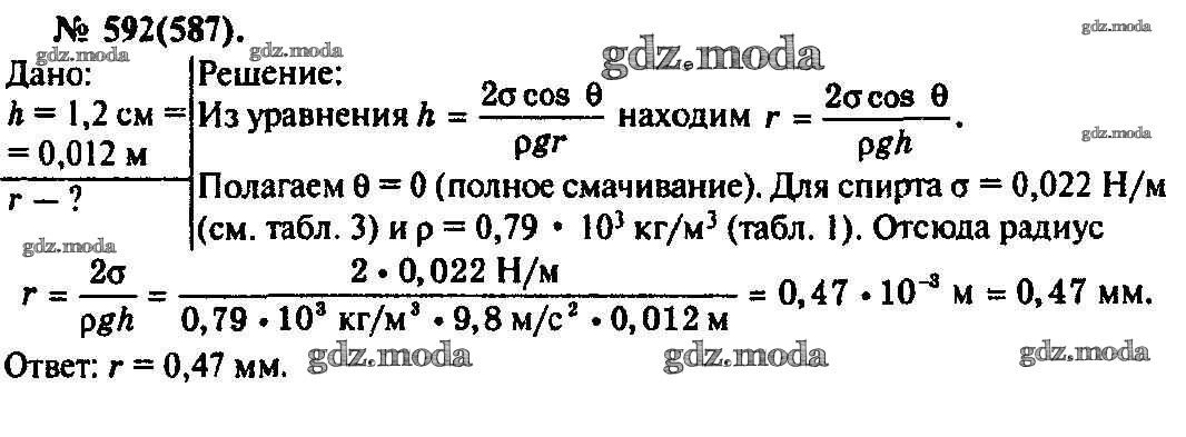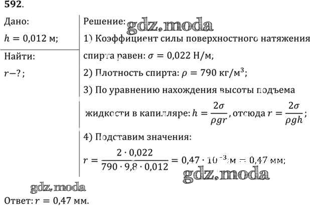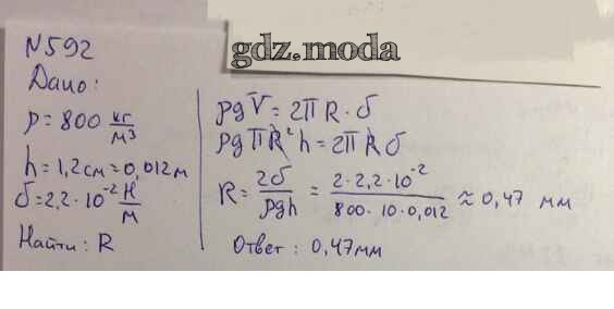 ОТВЕТ на задание № 592 Задачник по Физике 10-11 класс Рымкевич УМК