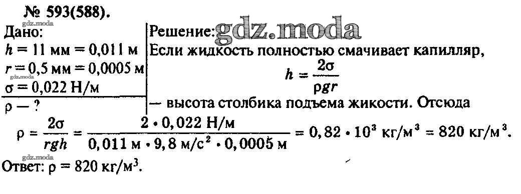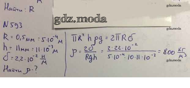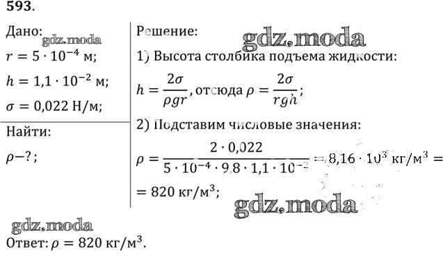 ОТВЕТ на задание № 593 Задачник по Физике 10-11 класс Рымкевич УМК