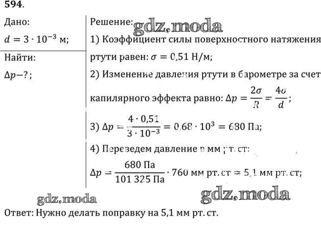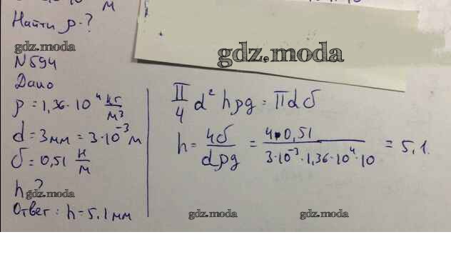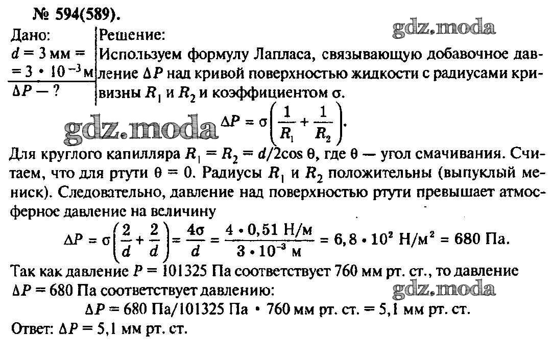 ОТВЕТ на задание № 594 Задачник по Физике 10-11 класс Рымкевич УМК