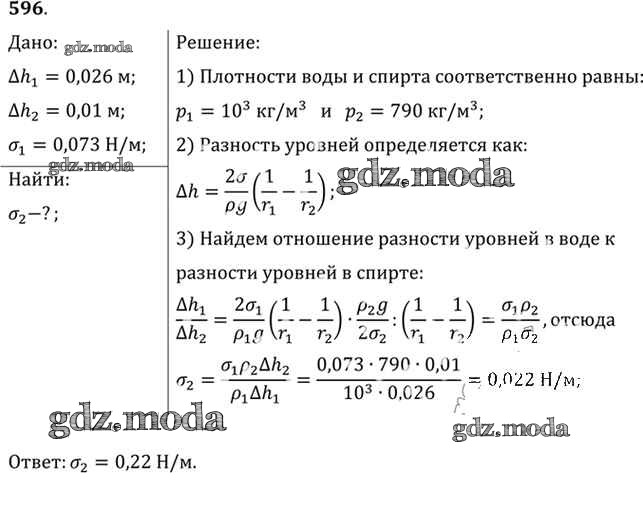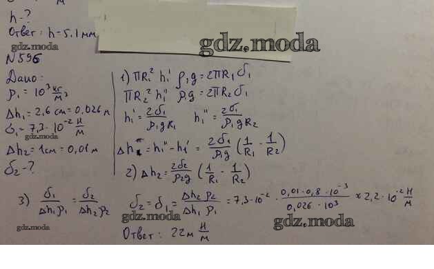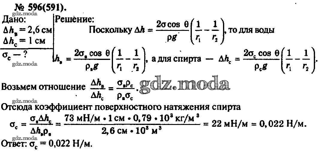 ОТВЕТ на задание № 596 Задачник по Физике 10-11 класс Рымкевич УМК