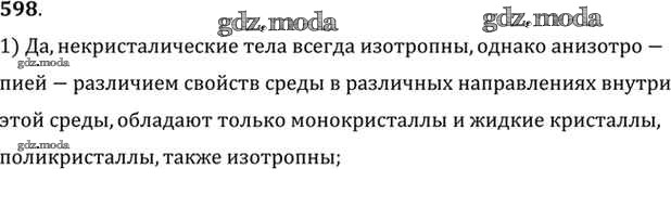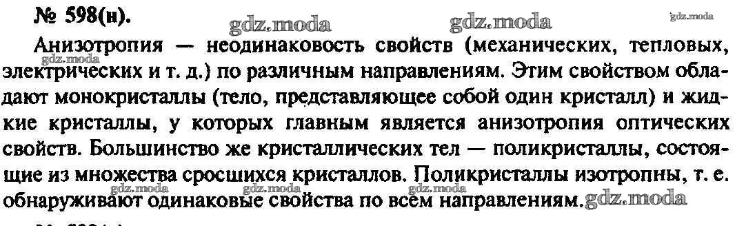 ОТВЕТ на задание № 598 Задачник по Физике 10-11 класс Рымкевич УМК