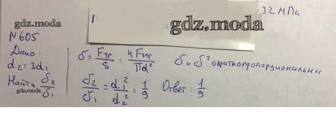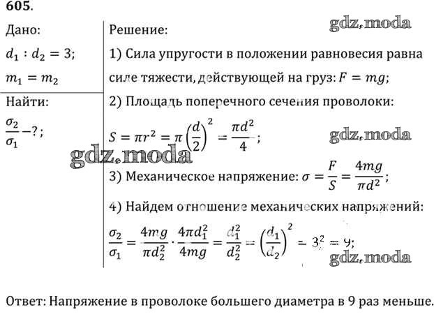 ОТВЕТ на задание № 605 Задачник по Физике 10-11 класс Рымкевич УМК