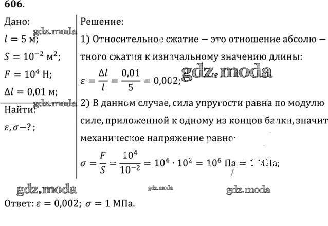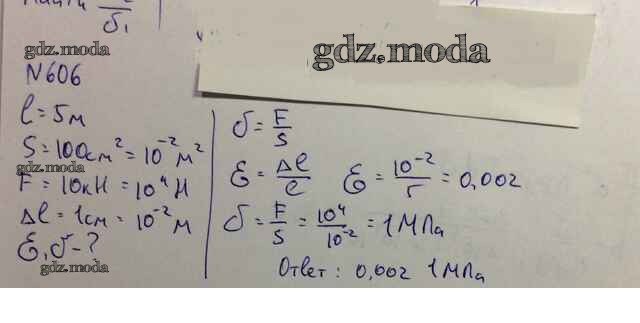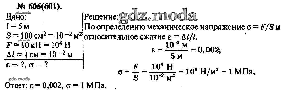ОТВЕТ на задание № 606 Задачник по Физике 10-11 класс Рымкевич УМК