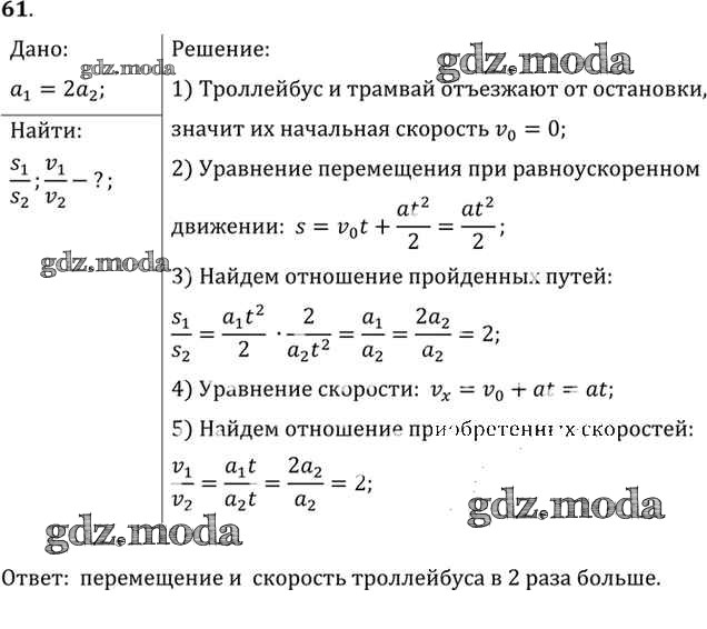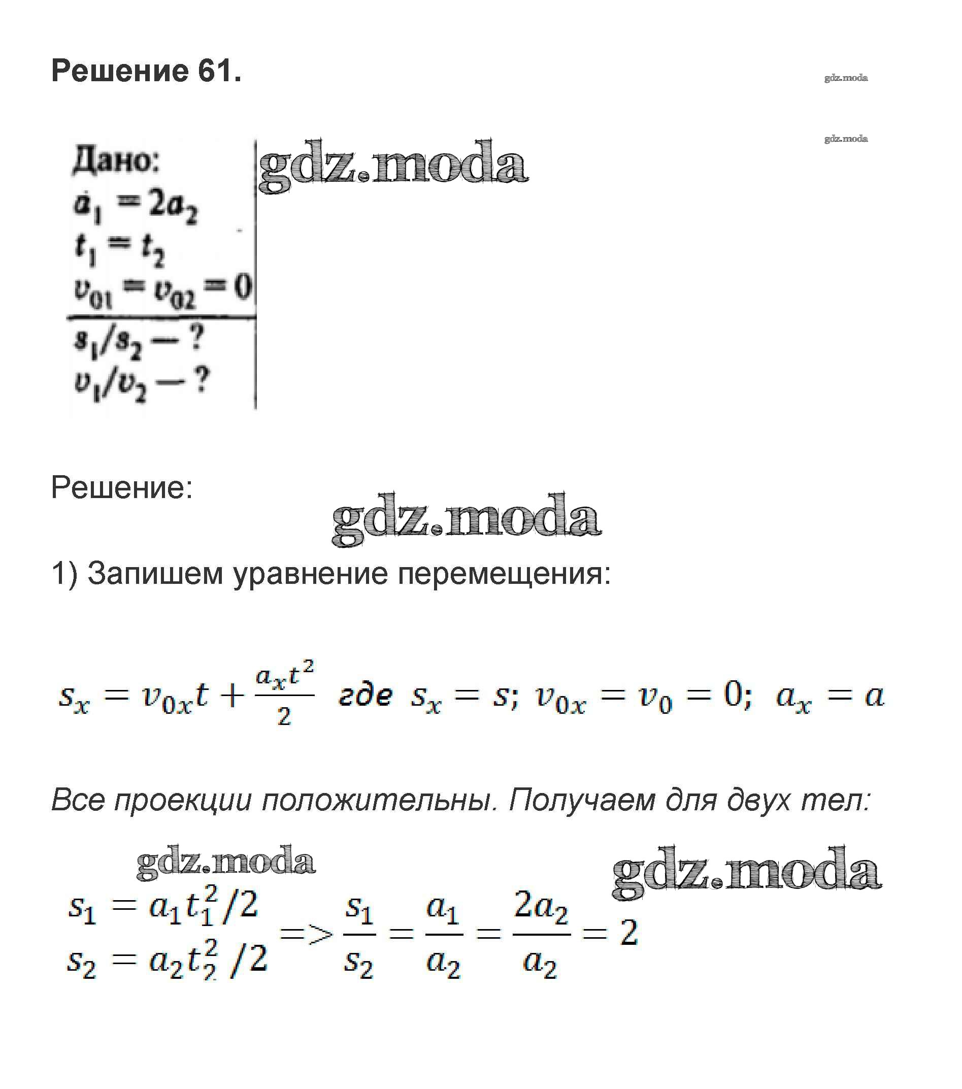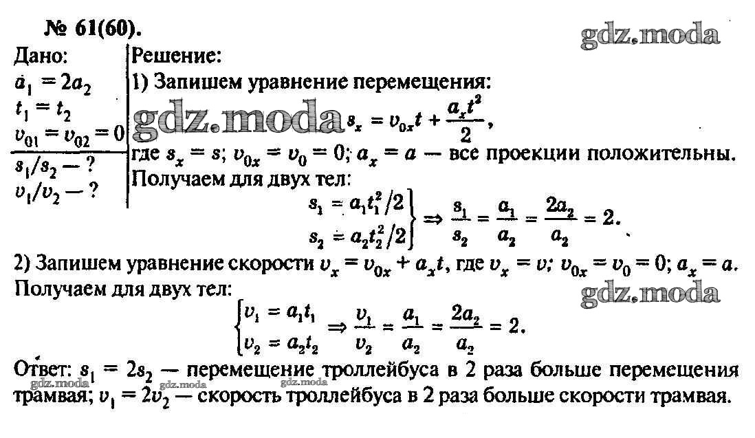 ОТВЕТ на задание № 61 Задачник по Физике 10-11 класс Рымкевич УМК