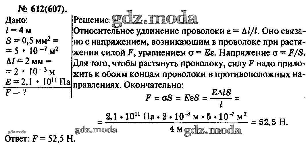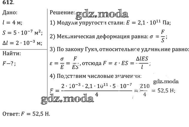 ОТВЕТ на задание № 612 Задачник по Физике 10-11 класс Рымкевич УМК
