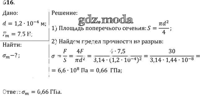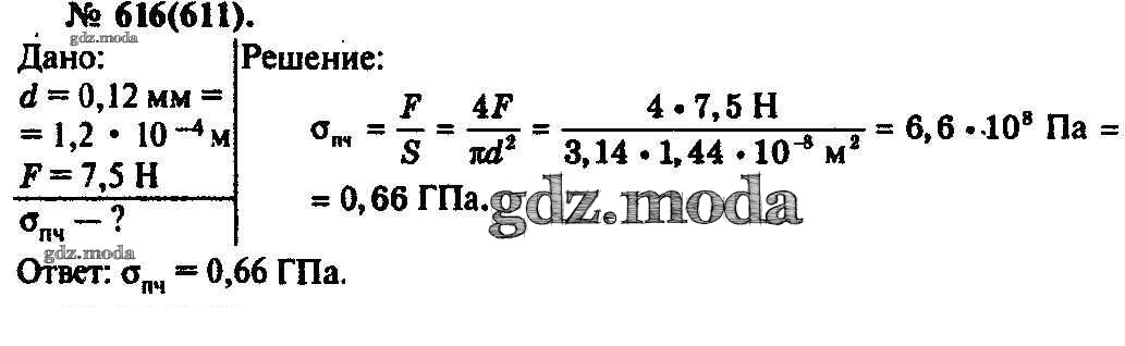ОТВЕТ на задание № 616 Задачник по Физике 10-11 класс Рымкевич УМК