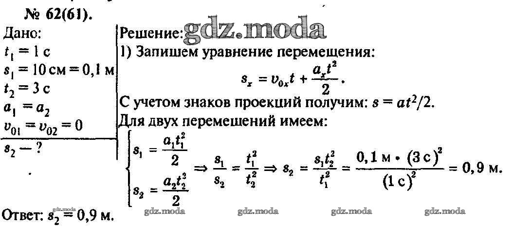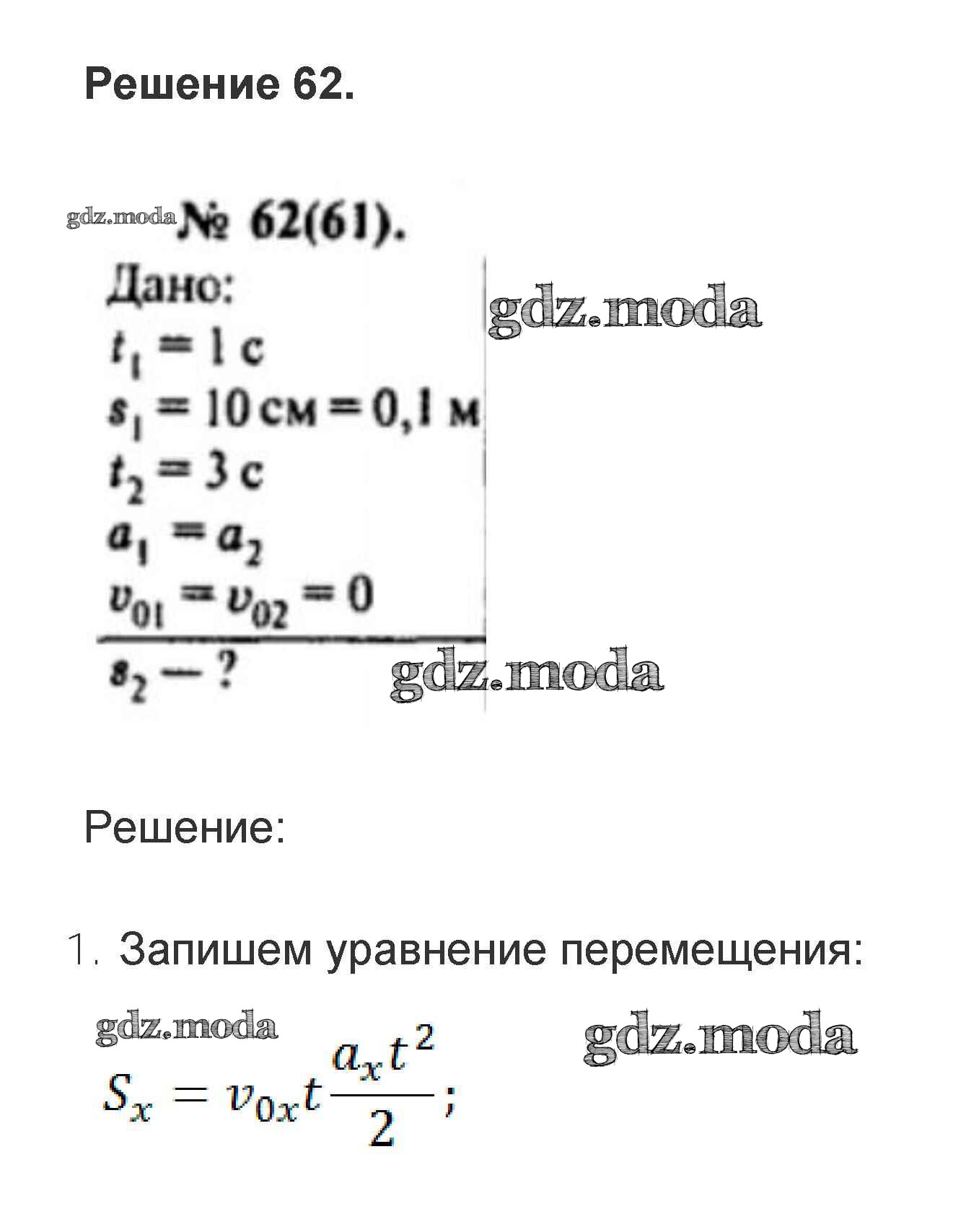 ОТВЕТ на задание № 62 Задачник по Физике 10-11 класс Рымкевич УМК