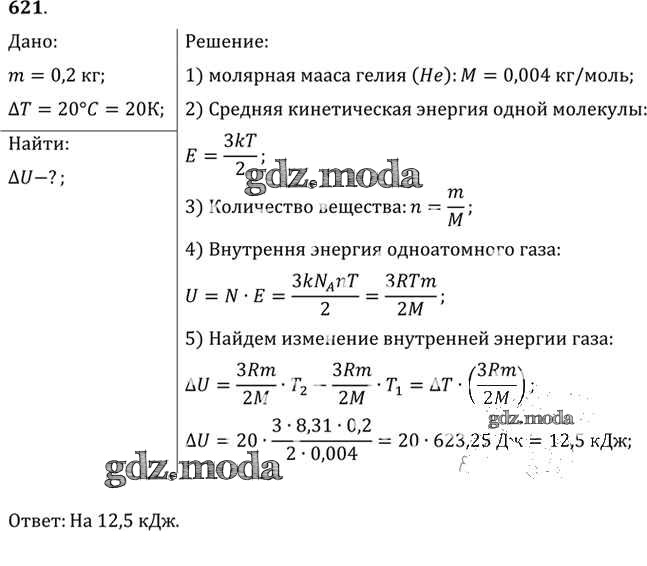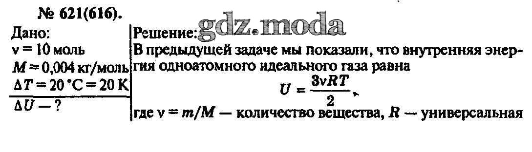 ОТВЕТ на задание № 621 Задачник по Физике 10-11 класс Рымкевич УМК