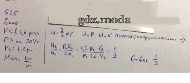 ОТВЕТ на задание № 625 Задачник по Физике 10-11 класс Рымкевич УМК
