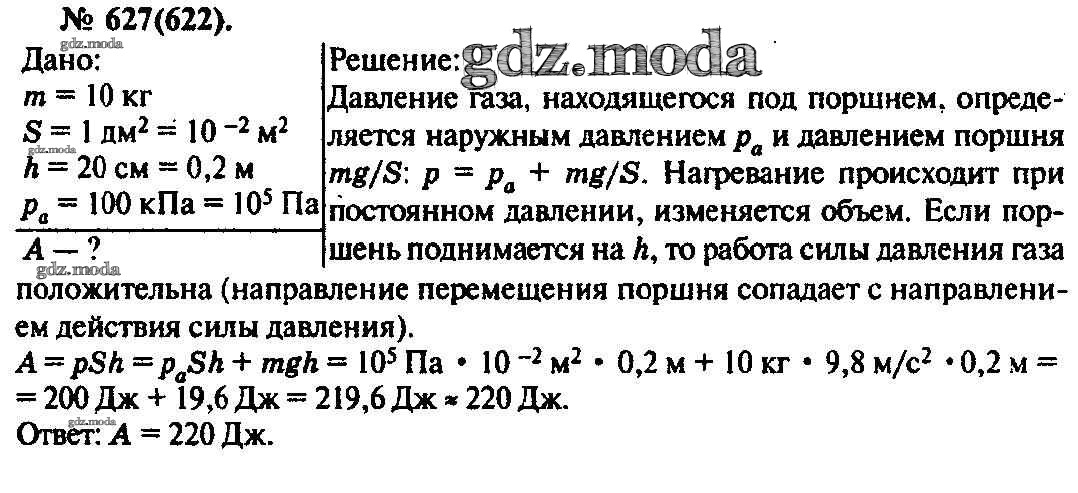 ОТВЕТ на задание № 627 Задачник по Физике 10-11 класс Рымкевич УМК