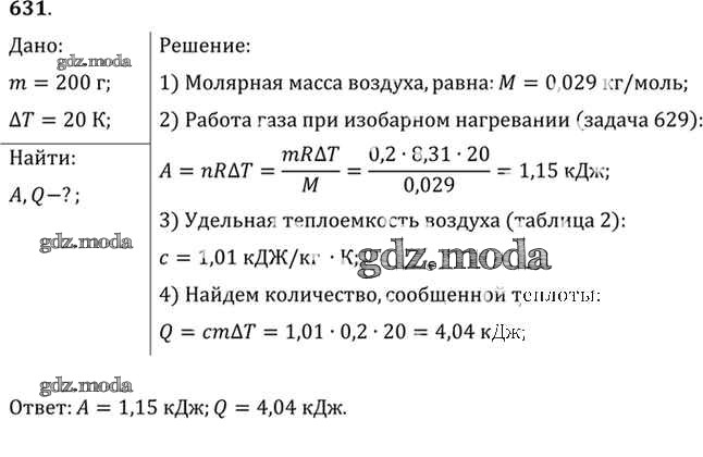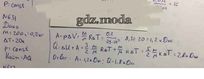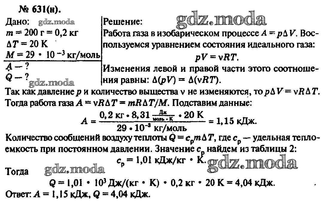 ОТВЕТ на задание № 631 Задачник по Физике 10-11 класс Рымкевич УМК