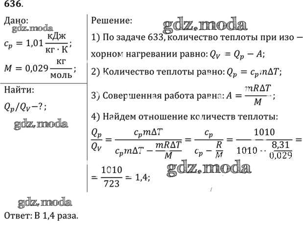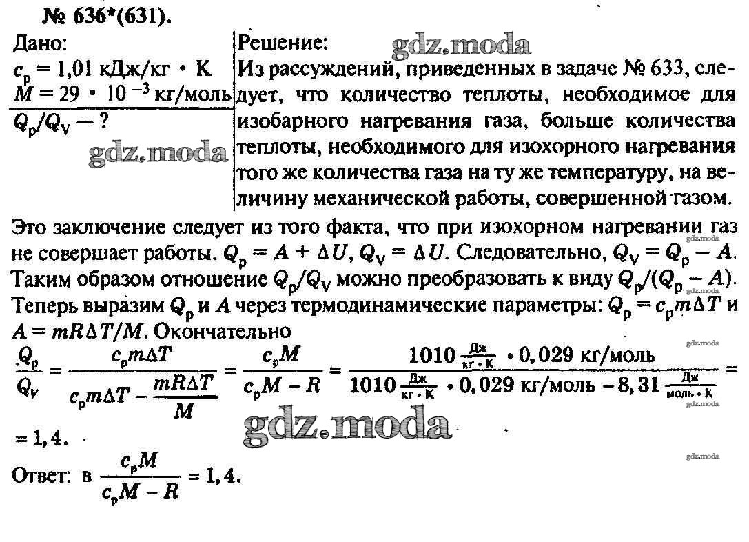 ОТВЕТ на задание № 636 Задачник по Физике 10-11 класс Рымкевич УМК