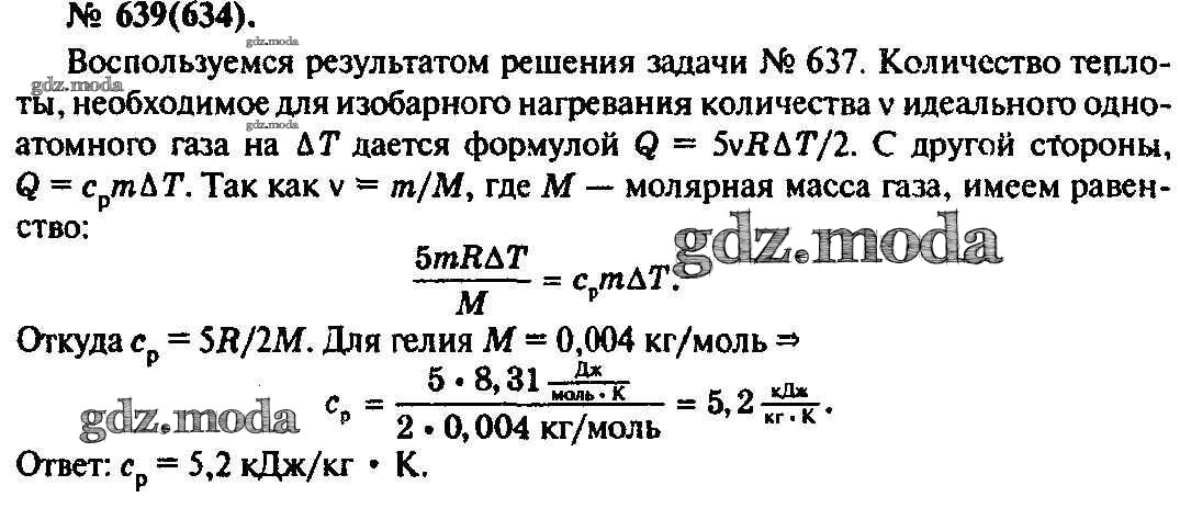 ОТВЕТ на задание № 639 Задачник по Физике 10-11 класс Рымкевич УМК