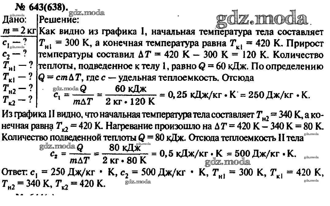 ОТВЕТ на задание № 643 Задачник по Физике 10-11 класс Рымкевич УМК